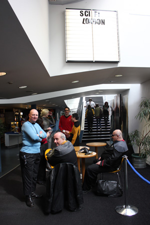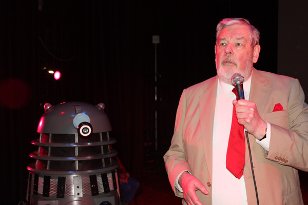 This was held in the nearby Stratford Circus, which seemed sort of apt given the nature of the guests. Popcorn, Krispy Kreme donuts and Mad Dog lemonade were served up to replenish any flagging energy, just in time to introduce to special guests; Michael Kilgarriff, better known as the Cyber Controller, and Sophie Aldred, who played the Doctor's companion Ace.